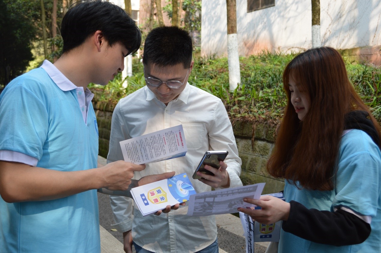 3月15日,是一年一度的国际消费者权益日,为保障校园消费者权益,防范金融诈骗,天游ty8线路1线路2检测中心团干部学以致用,从学生和商家两个层面出发,开展“优化消费环境 保护消费者权益”宣传调研活动。
