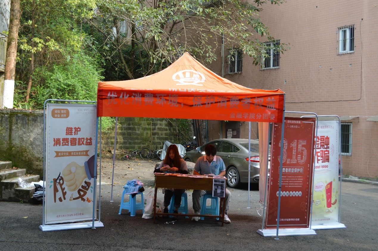 团干部在北10公寓前设置宣传点,一边发放针对大学生消费者权益保护的宣传册,一边对手册的内容进讲解,内容涵盖大学生消费陷阱及案例、防范金融诈骗的途径等;其次是开展线上的问卷调查以及数据整理,了解同学们平时的消费习惯和消费困惑,并普及消费者权益维护相关法律法规;最后向校园商家推广宣传315国际消费者权益保护日,倡导诚信经营,维护消费者权益。