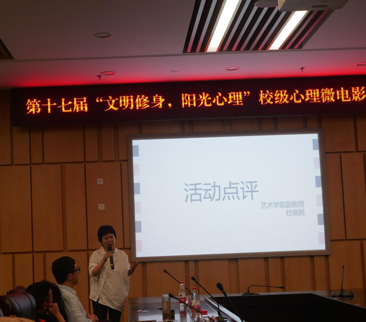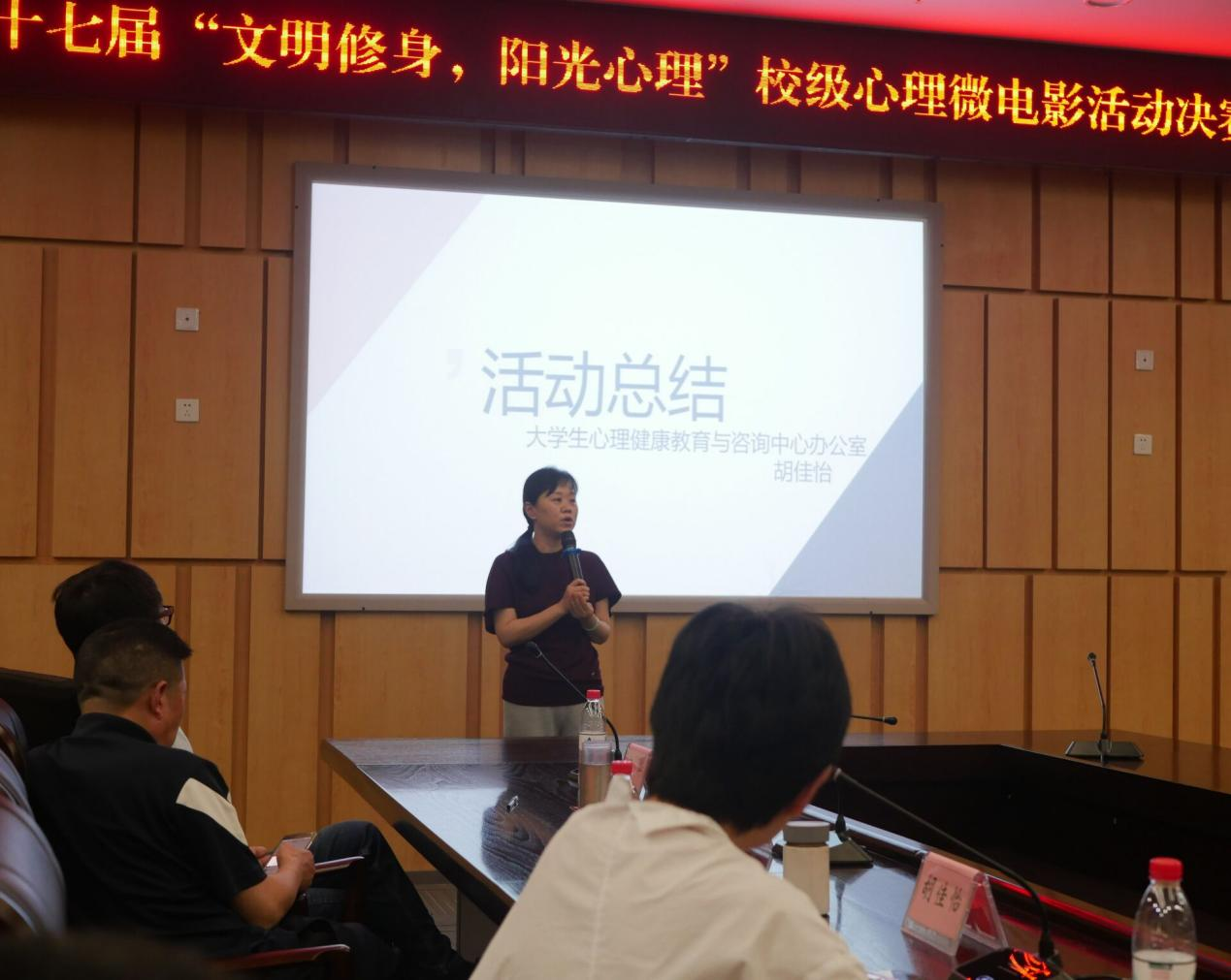 十组参赛作品展示后,大学生心理健康教育与咨询中心办公室的胡佳怡老师对活动进行总结。胡老师从实际出发,结合理论,分析活动主题,提炼解决要点,让大家对心理知识有了更深的了解。