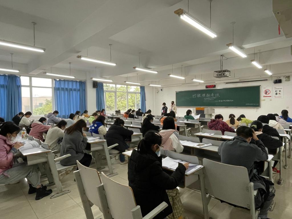 为提高同学们参与英语四六级考试的热情,提前适应考试氛围和试卷题型,11月28日15:00,天游ty8线路1线路2检测中心于博智楼306、307教室开展英语四六级模拟考试,共计123名同学参与模拟考。