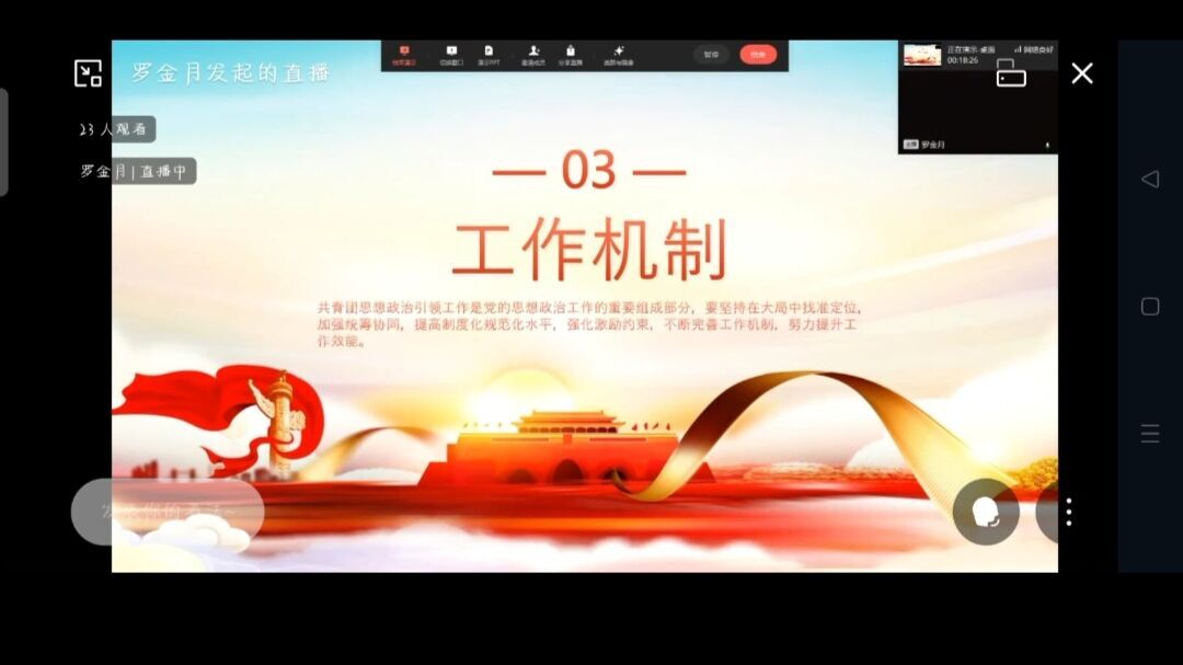 活动在庆祝中国共青团成立100周年主题宣传片《共青春》主题曲《有我》的青春问答中拉开,同学们在细腻而又气势磅礴的旋律中感受一代代不负时代重托的中国青年模样。随后,天游ty8线路1线路2检测中心分团委组织部部门负责人罗金月领学,内容涵盖团中央发布的《新时代加强和改进共青团思想政治引领工作实施纲要》及习近平总书记在中国人民大学考察时的重要讲话精神。她对《新时代加强和改进共青团思想政治引领工作实施纲要》中主要项目、基本方法、工作机制的具体规定进行详细讲解,在讲到开展劳动教育板块,号召同学们以五月“劳动月”为契机,积极投入到志愿服务、专业实践、社会调研等活动,把养成劳动习惯、强化劳动情感、掌握劳动技能结合起来,传播“崇尚劳动、热爱劳动、辛勤劳动”的道德风尚。在分享习近平总书记在中国人民大学考察时的重要讲话精神时,同学们纷纷表示备受鼓舞,深受感染,将牢记嘱托,“不负韶华,不负时代,不负人民,在青春的赛道上奋力奔跑,争取跑出当代青年的最好成绩”!