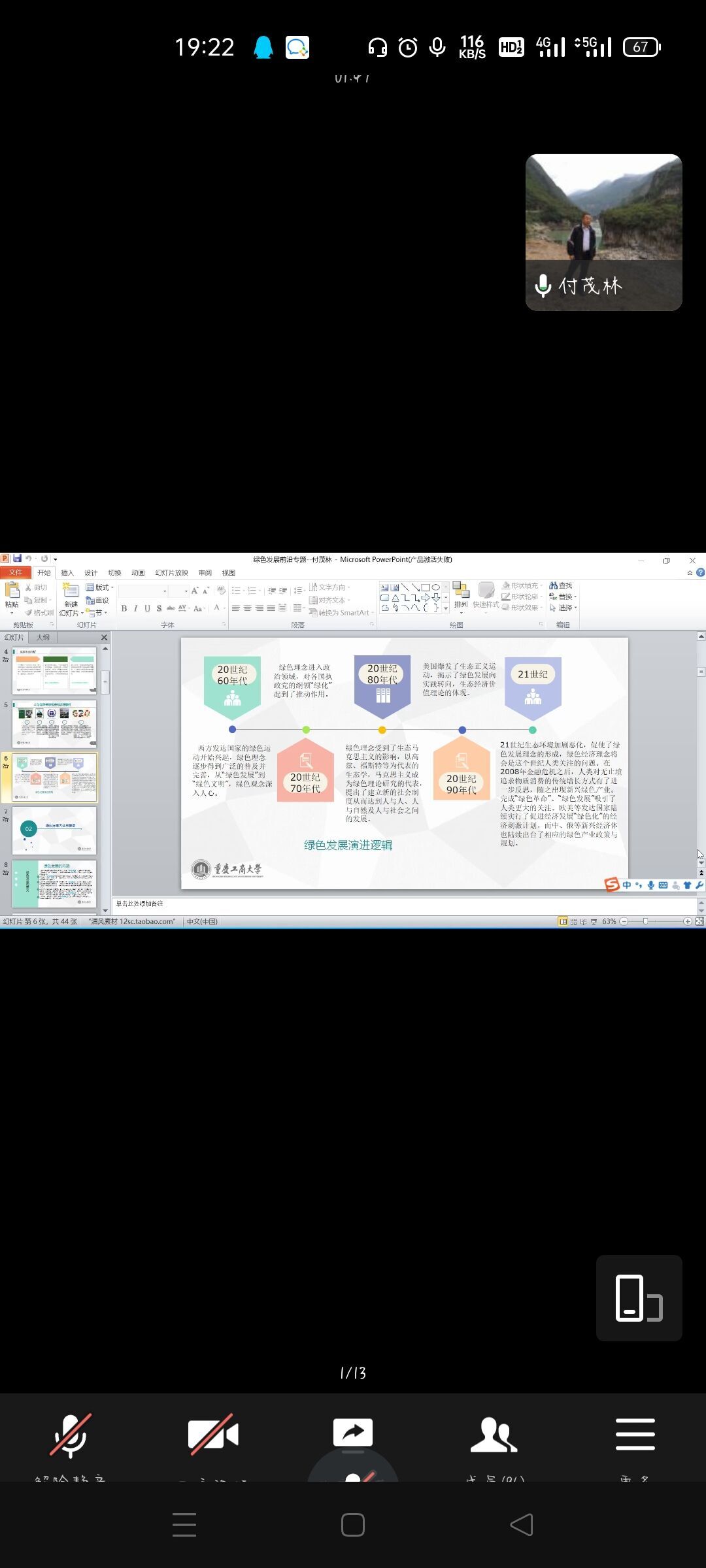 会议伊始,付老师向同学们介绍了如今的资源环境问题、人与自然的关系,通过介绍绿色发展的内涵与要素、绿色发展的理论基础,让同学们对“绿色发展”一词有了更加清晰的了解。随后,付老师向同学们重点讲述了绿色发展的中国思想,包括绿色发展与“十三五”规划、习近平总书记的绿色发展理念以及当代中国的绿色发展。最后,付老师讲述了绿色发展研究前沿,其中包括绿色金融与可持续发展、碳达峰碳中和、人口变迁与绿色发展等重要内容,带领同学们对“绿色发展前沿”这一主题进行系统的了解。