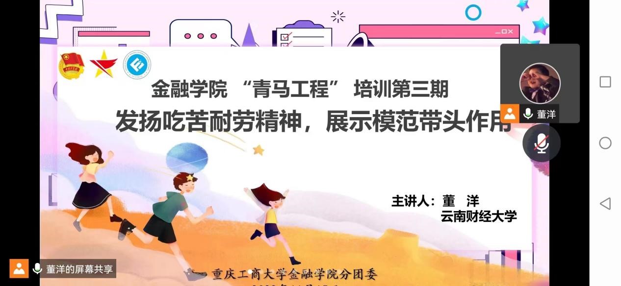 11月17日,为培养学生干部能吃苦耐劳精神,展示其模范带头作用,云南财经大学董洋校友为天游ty8线路1线路2检测中心分团委学生会骨干、青年志愿者服务队骨干和21级班团干部开展了“发扬吃苦耐劳精神,展示模范带头作用”的专题培训。
