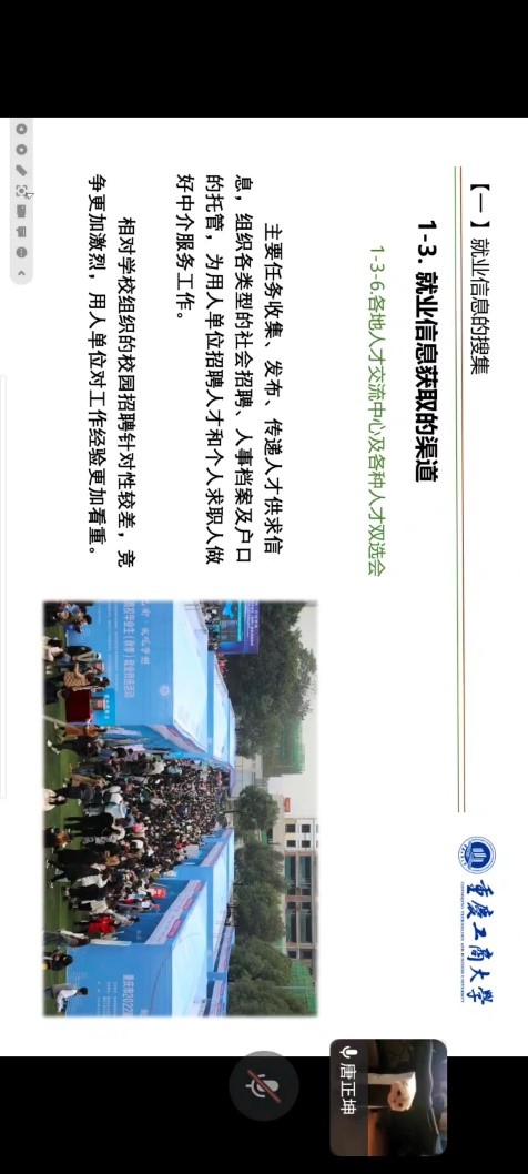 在明确了发展道路后,唐正坤介绍了发展道路上同学们所要明晰的发展方向。他建议同学们打牢基础,认真做好眼前事,学好眼前各项课程内容,向高绩点、高掌握度招手。在学习之余,也要积极参与课外活动,不要把工作当成负担,从中学习,从中收获经验。同时一定要勇于发现自我闪光点,树立自信的人生态度。最后,唐正坤向同学们分享了关于就业信息的类型、材料和获取渠道,让同学们对未来有更加清晰的认知,也祝同学们跃入人海,但不湮于人海。