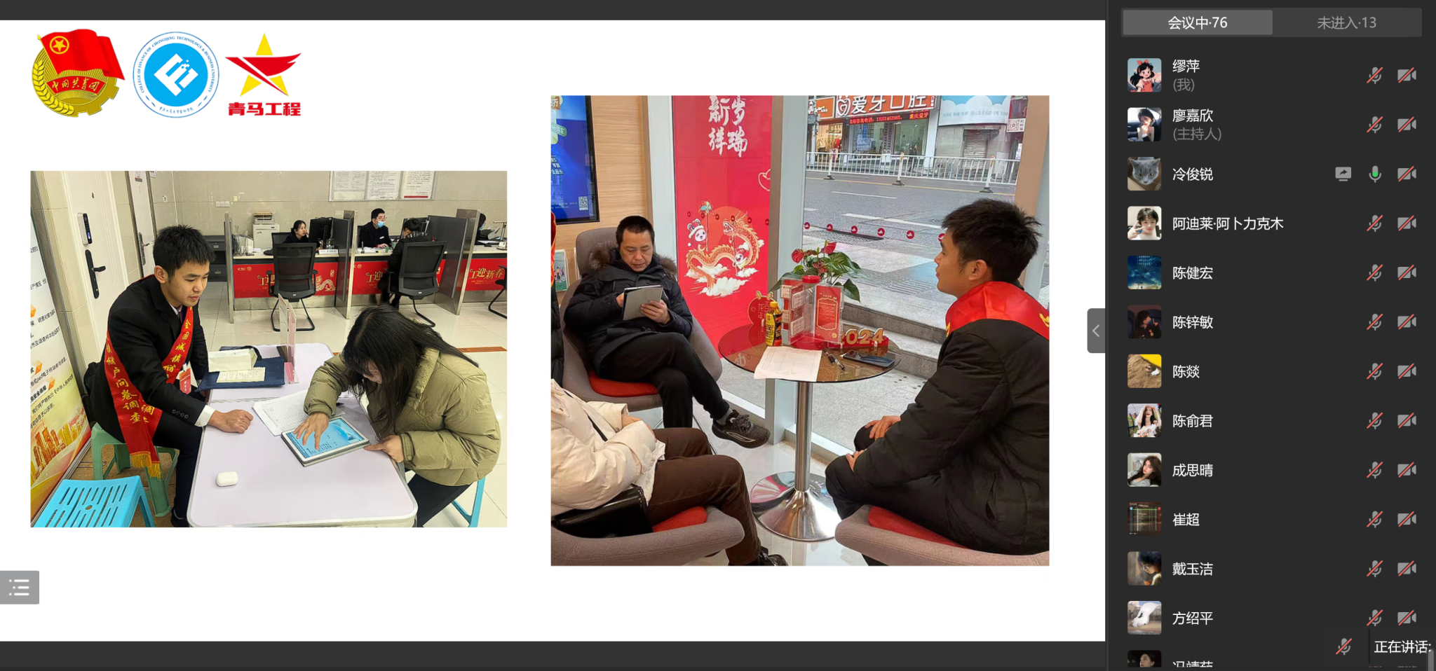 为展示金融学子2024年寒假社会实践风采,引导金融学子通过社会实践深入学习党的二十大精神,正确把握前进方向,2024年3月13日21:45,天游ty8线路1线路2检测中心以“寒假实践显能耐,青春金融展风采”为主题的第五期青马工程培训在企业微信线上成功举行。本次培训邀请了寒假社会实践优秀学子邱薇竹、冷俊锐进行实践经验分享,会议由廖嘉欣主持。