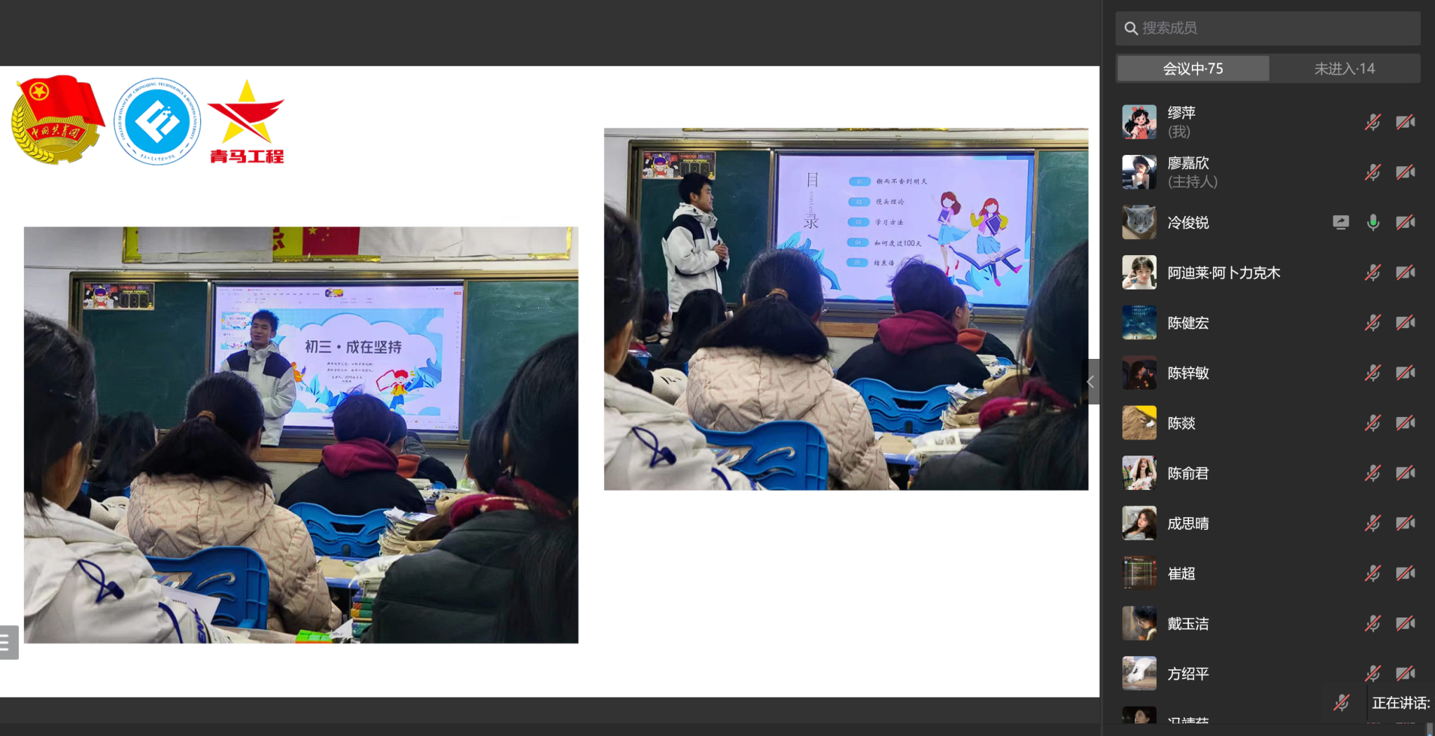 冷俊锐同学为我们分享的是他寒假参加中国人民银行举行的金融调研工作的实践体验。他先是为大家介绍了调研工作的基本情况和工作内容,在这一过程中他凭借着良好的金融素养和认真的工作态度顺利完成了此次调研。在调研中,他勤学善思、边听边学,不同社会群体对金融系列知识的不同看法让他见识到了金融的多面性,也弥补了他金融知识的不足。同时通过调研,他向大家普及了更多金融常识,这让他很高兴,他表示建设金融强国是一件久久为功的工作,他很愿意为普及金融知识出一份力。在他的寒假社会实践经历中另一件让他骄傲的是他回到了他的母校四川省绵阳市桑枣中学,在那里举办了一系列的专题讲座,与同学们分享他的学习经验和生活感悟,让他们感受到不同的思考视角和生活可能。在这个过程中他以自身中考经验为基础,开展“如何走向中考成功之路”主题讲座,同初三学子分享备考经验和考试技巧,鼓励他们勇敢地追逐梦想。他也希望通过他的经历来带动更多的人走进社会,参与实践。