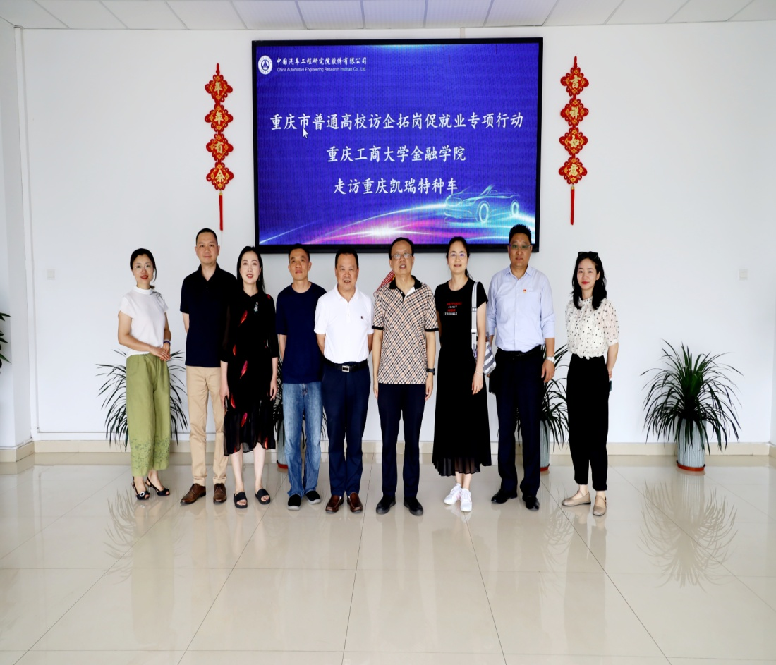 2023年6月14日,天游ty8线路1线路2检测中心党委书记、副院长石世明、投资系教授靳景玉、金融系教师杨佳妮等协同部分校友,走访了重庆凯瑞特种车有限公司。2002级金融5班毕业生孟伟亮就职于该公司。重庆凯瑞特种车有限公司副总经理孟伟亮、综合部长吴燕、平台事业部销售经理王文川、平台事业部渠道专员陈泓丽等一起参加了交流座谈会。