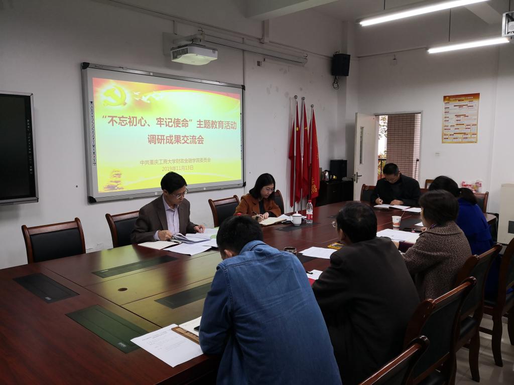 2019年11月13日,财政天游ty8线路1线路2检测中心党委召开了“不忘初心、牢记使命”主题教育调研成果交流会。学校巡回指导二组陈兴述、丁杨到会指导,学院班子全体成员参加了交流会,会议由党委书记杨萍主持。