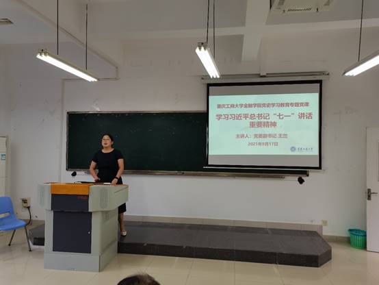 王兰指出,习近平总书记“七一”重要讲话,立足中国共产党百年华诞的重大时刻和“两个一百年”历史交汇的关键节点,回望光辉历史、擘画光明未来,是一篇马克思主义纲领性文献,是新时代中国共产党人不忘初心、牢记使命的政治宣言,是我们党团结带领人民以史为鉴、开创未来的行动指南。围绕习近平总书记“七一”重要讲话精神,王兰以“四个成就”“伟大建党精神”“寄语青年”“一个号召”为线索,详细解读了重要讲话精神的重大政治意义、理论意义、实践意义;从中国共产党取得伟大成就的原因、获得的启示等方面分享了学习心得体会;用“九个必须”对如何学习领会和贯彻落实习近平总书记“七一”重要讲话精神提出了要求。
