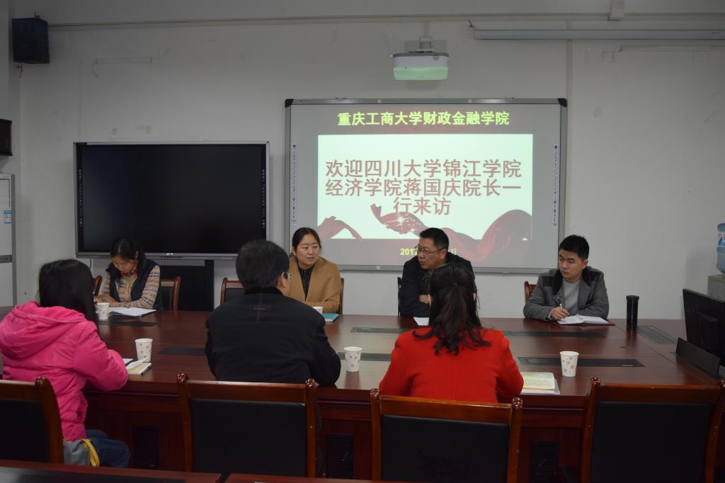 2017年3月23日上午9:00点,四川大学锦江学院经济学院院长蔡国庆教授等三人一行到天游ty8线路官网交流访问,天游ty8线路官网副院长王兰教授、投资系教师毛跃一教授等人进行了亲切接待,双方共同探讨了CFA办学经验等事宜。