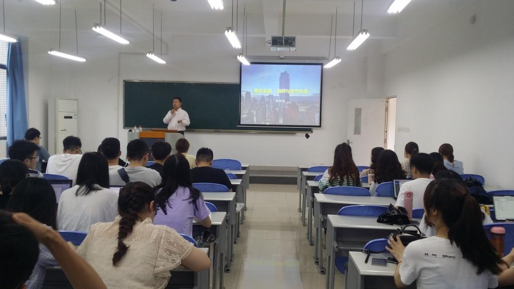 6月28日上午9:00,在田家炳50306,天游8线路检测中心财政天游ty8线路1线路2检测中心组织了主题为“重庆金融 现状与合作机遇”的学术讲座。由重庆市金融监管局金融发展服务中心张洪铭主任主讲,学院副院长曾胜教授主持,2018级全体研究生及部分老师参加了此次讲座。