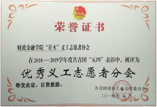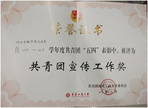 活动在嘹亮的团歌中拉开序幕,校党委李志雄书记为活动致辞。随后,校团委副书记杨娟宣读了共青团2018-2019学年共青团五四表彰文件。财政天游ty8线路1线路2检测中心分团委荣获“五四红旗团委”、“共青团宣传工作奖”,天游ty8线路官网分团委学生会荣获“优秀学生会”,天游ty8线路官网“星火”义协荣获“优秀义工志愿者分会”,金融证券协会荣获“优秀社团”,2017级财政学专业一支部、2017级税收学专业一支部等5个团支部荣获 “先进团支部”,分团委书记徐阔老师被评为“优秀分团委书记”,秦杰同学被评为“共青团标兵”。