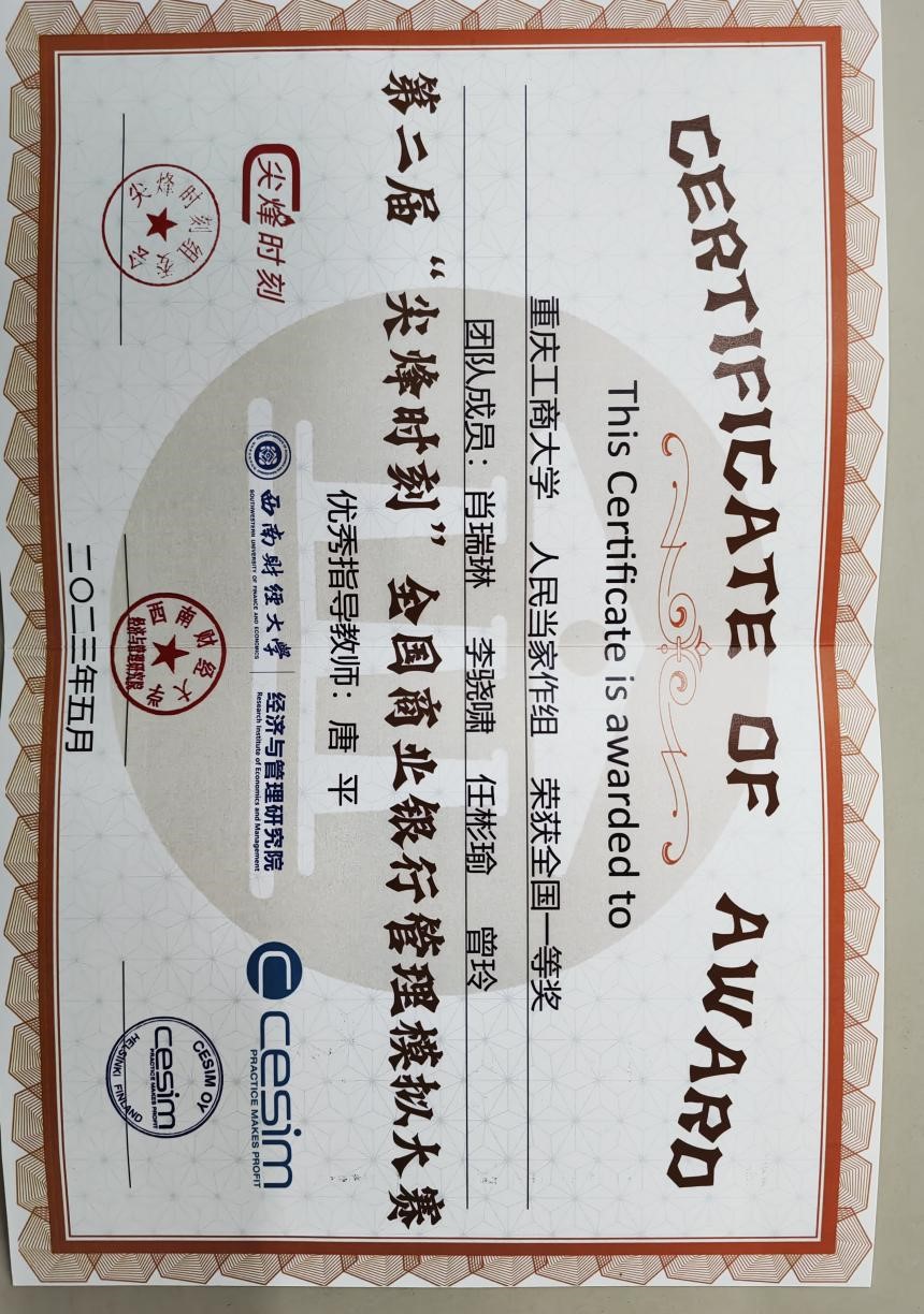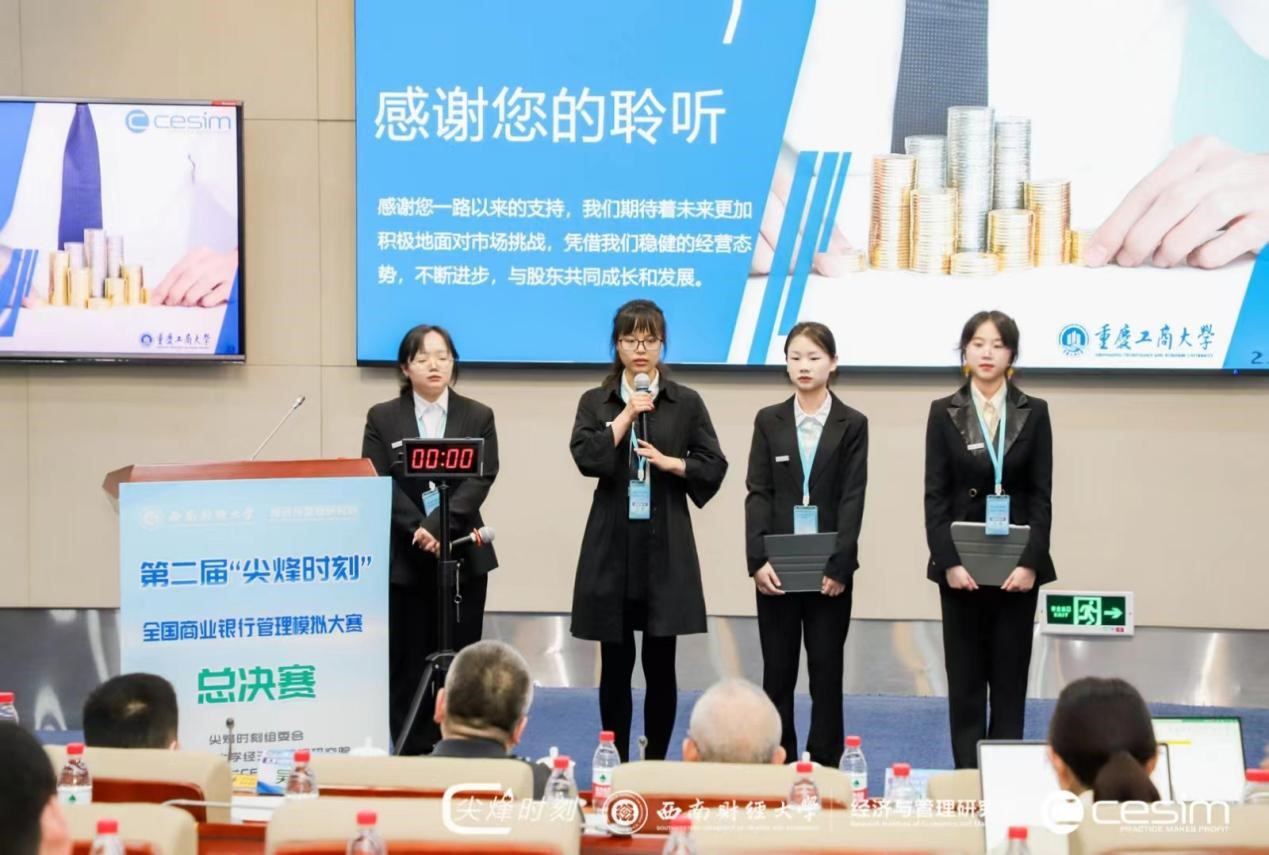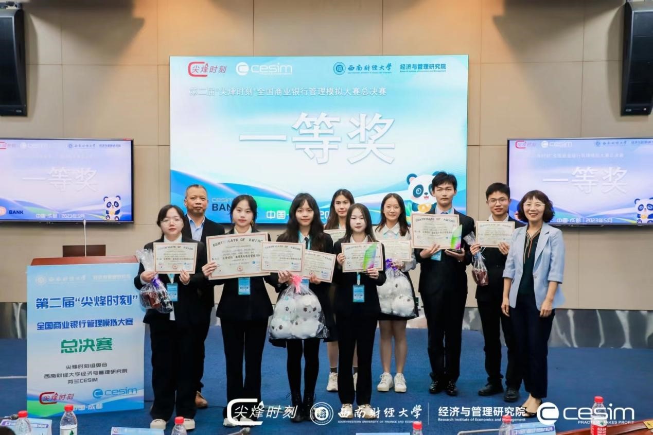 2023年5月19日-2023年5月21日,第二届“尖烽时刻”全国商业银行管理模拟大赛总决赛在西南财经大学举办。本次比赛参与面广,有近40所院校近120支团队参加初赛,经过激烈角逐,来自17所院校的20支团队进入总决赛。天游ty8线路官网20投资一班肖瑞琳、20金融一班李骁啸、21金融工程一班任彬瑜、20CFA1班曾玲在唐平老师的指导下入围总决赛并荣获全国一等奖。